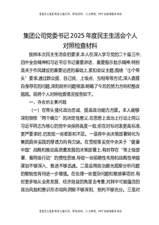 集团公司党委书记2025年度民主生活会个人对照检查材料.docx
