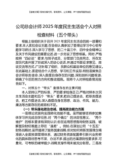 公司总会计师2025年度民主生活会个人对照检查材料(五个带头).docx