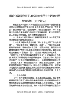 国企公司领导班子2025年度民主生活会对照检查材料(五个带头).docx
