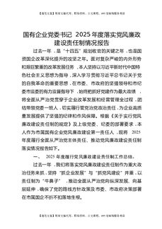 国有企业党委书记2025年度落实党风廉政建设责任制情况报告.docx