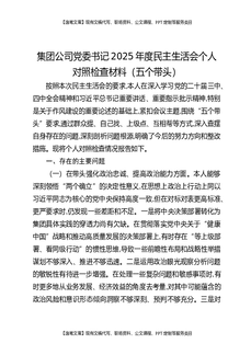 集团有限公司2025年度民主生活会领导班子对照检查材料(五个带头).docx