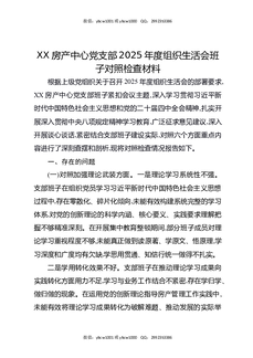 XX房产中心党支部2025年度组织生活会班子对照检查材料.docx