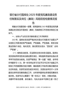 银行省分行国库处2025年度党风廉政建设责任制落实及岗位(廉政)风险防控检查情况报告.docx