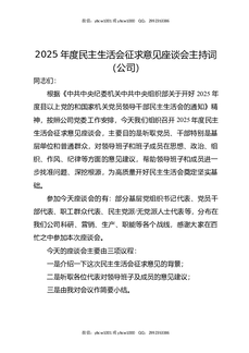 2025年度民主生活会征求意见座谈会主持词(公司).docx