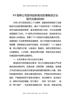 XX烟草公司坚持创新驱动发展推进企业现代化建设材料.docx
