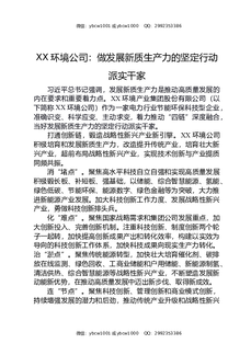 XX环境公司:做发展新质生产力的坚定行动派实干家.docx