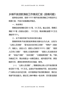 乡镇不良贷款清收工作情况汇报(困难问题).docx