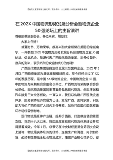 在202X中国物流形势发展分析会暨物流企业50强论坛上的主旨演讲.doc