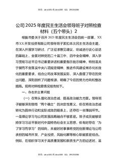公司2025年度民主生活会领导班子对照检查材料(五个带头)2.docx