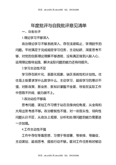 年度批评与自我批评意见清单.docx