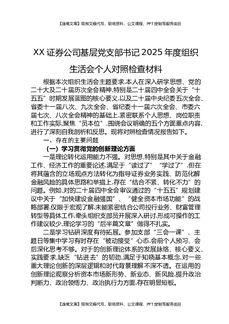 XX证券公司基层党支部书记2025年度组织生活会个人对照检查材料.docx
