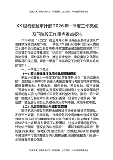 XX银行纪检审计部2026年一季度工作亮点及下阶段工作重点难点报告.docx