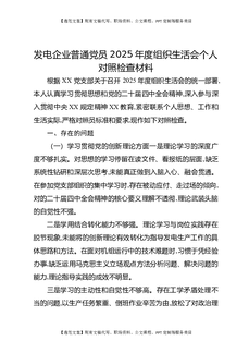 发电企业普通党员2025年度组织生活会个人对照检查材料.docx