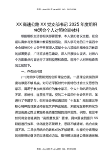 XX高速公路XX党支部书记2025年度组织生活会个人对照检查材料.docx