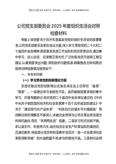 公司党支部委员会2025年度组织生活会对照检查材料.docx