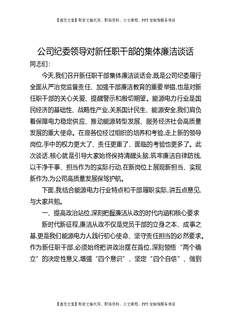 公司纪委领导对新任职干部的集体廉洁谈话.docx