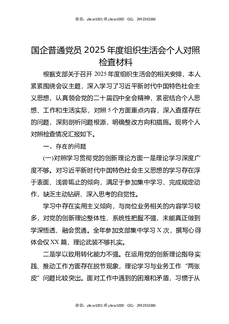 国企普通党员2025年度组织生活会个人对照检査材料.docx