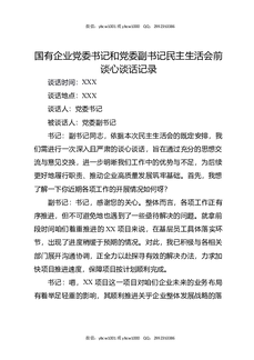 国有企业党委书记和党委副书记民主生活会前谈心谈话记录.docx