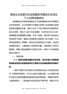 国有企业党委书记巡察整改专题民主生活会个人对照检查材料.docx