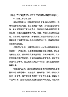 国有企业党委书记民主生活会自我批评意见.docx