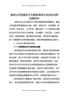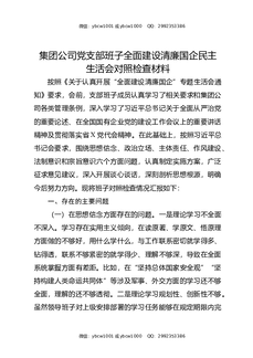 集团公司党支部班子全面建设清廉国企民主生活会对照检查材料.docx