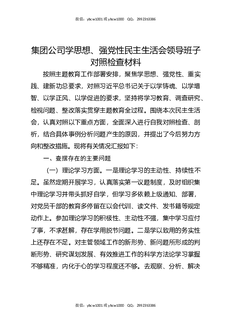 集团公司学思想,强党性民主生活会领导班子对照检查材料.docx