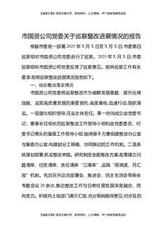 市国资公司党委关于巡察整改进展情况的报告.docx