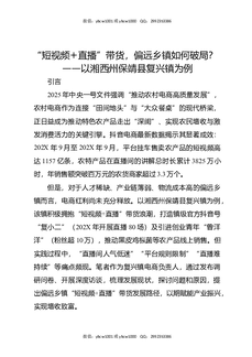 “短视频,直播”带货,偏远乡镇如何破局?——以湘西州保靖县复兴镇为例.docx