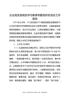 企业党支部党史XX教育专题组织生活会工作报告—.docx