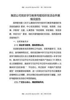 集团公司党史XX教育专题组织生活会开展情况报告.docx