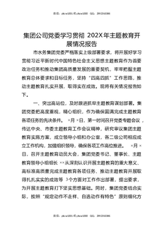 集团公司党委学习贯彻202X年主题教育开展情况报告.docx