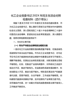化工企业党委书记202X年民主生活会对照检查材料(四个带头).docx