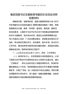 集团党委书记主题教育专题民主生活会对照检查材料.docx