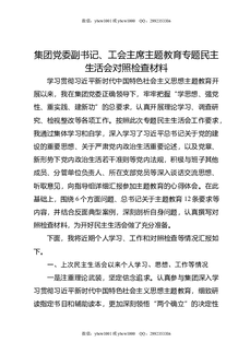 集团党委副书记,工会主席主题教育专题民主生活会对照检查材料.docx