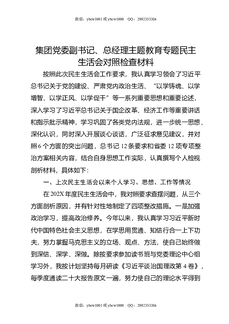 集团党委副书记,总经理主题教育专题民主生活会对照检查材料.docx