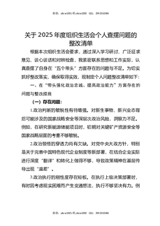 关于2025年度组织生活会个人查摆问题的整改清单.docx