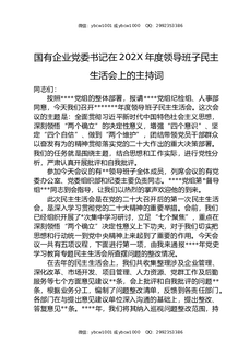 国有企业党委书记在202X年度领导班子民主生活会上的主持词.docx