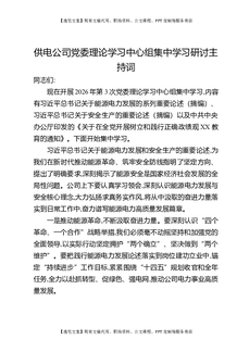 供电公司党委理论学习中心组集中学习研讨主持词.docx
