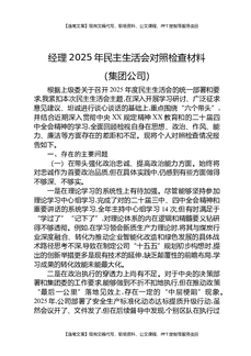 经理2025年民主生活会对照检查材料(集团公司).docx