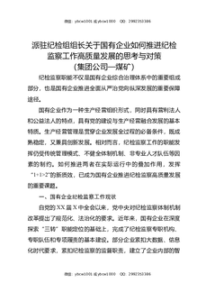 派驻纪检组组长关于国有企业如何推进纪检监察工作高质量发展的思考与对策(集团公司,煤矿).docx