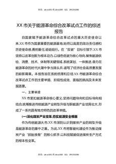 XX市关于能源革命综合改革试点工作的综述报告(精品).docx