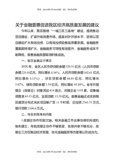 关于金融普惠促进我区经济高质量发展的建议.docx