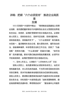 讲稿:把握“六个必须坚持”,推进企业高质量发展.docx