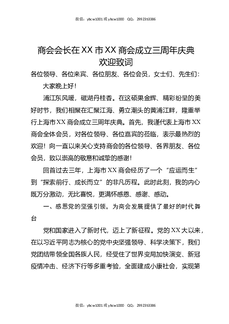 商会会长在XX市黄石商会成立三周年庆典欢迎致词.docx