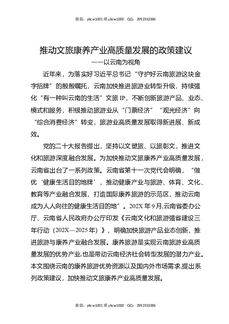 推动文旅康养产业高质量发展的政策建议——以云南为视角.docx