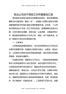 物业公司关于思政工作开展情况汇报.docx