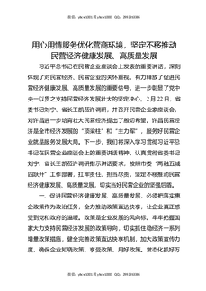 用心用情服务优化营商环境,坚定不移推动民营经济健康发展,高质量发展.docx