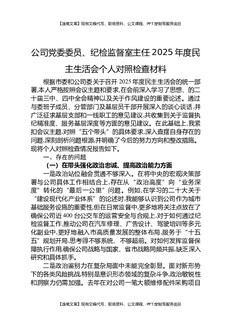 公司党委委员、纪检监督室主任2025年度民主生活会个人对照检查材料.docx