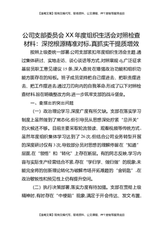 公司党支部委员会XX年度组织生活会对照检查材料:深挖根源精准对标,真抓实干提质增效.docx