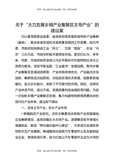 关于“大力发展乡镇产业集聚区主导产业”的建议案.docx